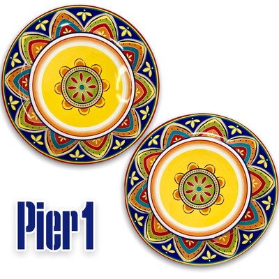 Pier 1 Mexicali Large Dinner Plates Bright Fiesta Ironstone Set Of Two 10 3 4 Ebay