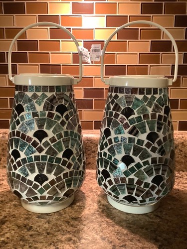 Pier 1 Imports Mosaic Glass Tile Lantern Candle Holder 1 White Teal Blue Nwt Ebay